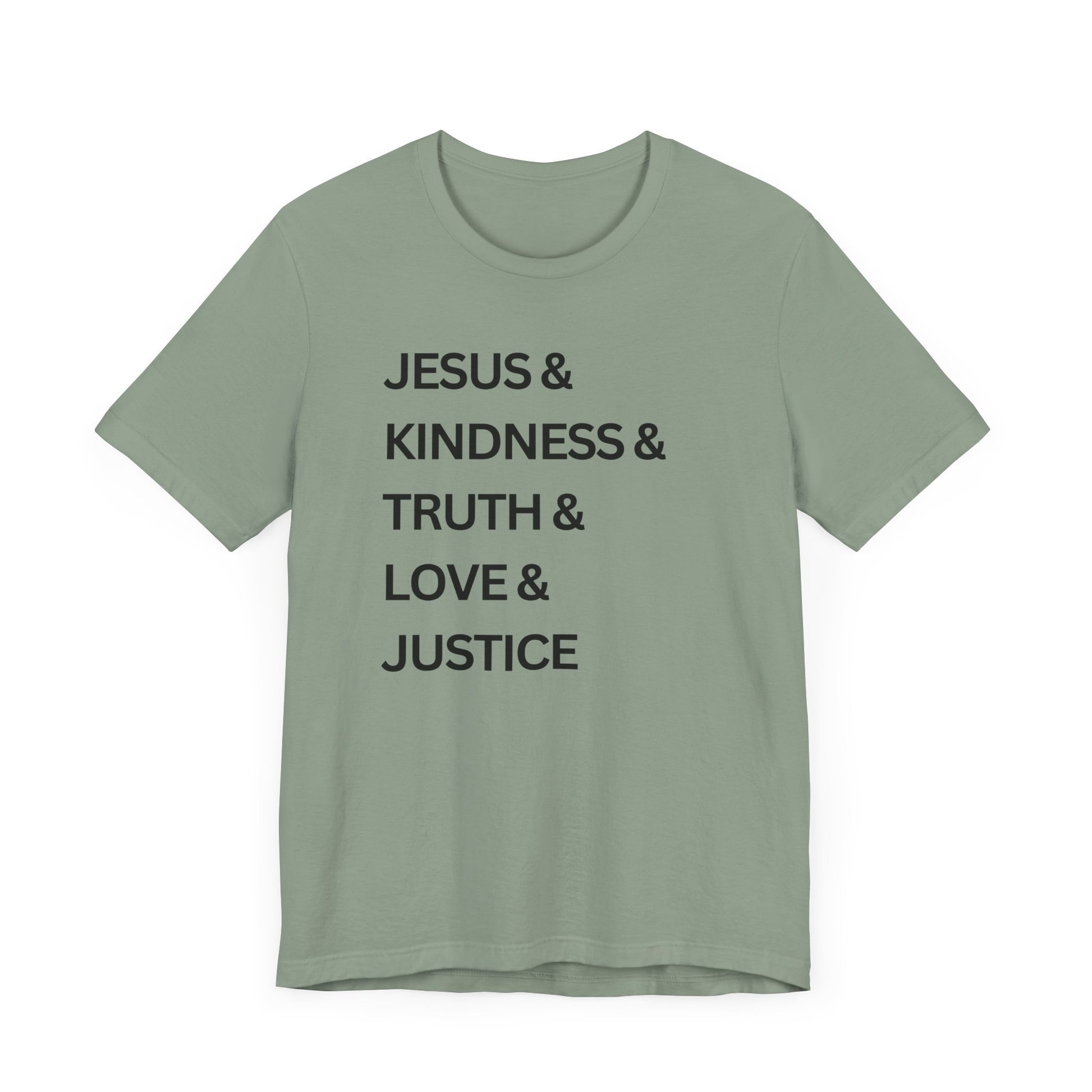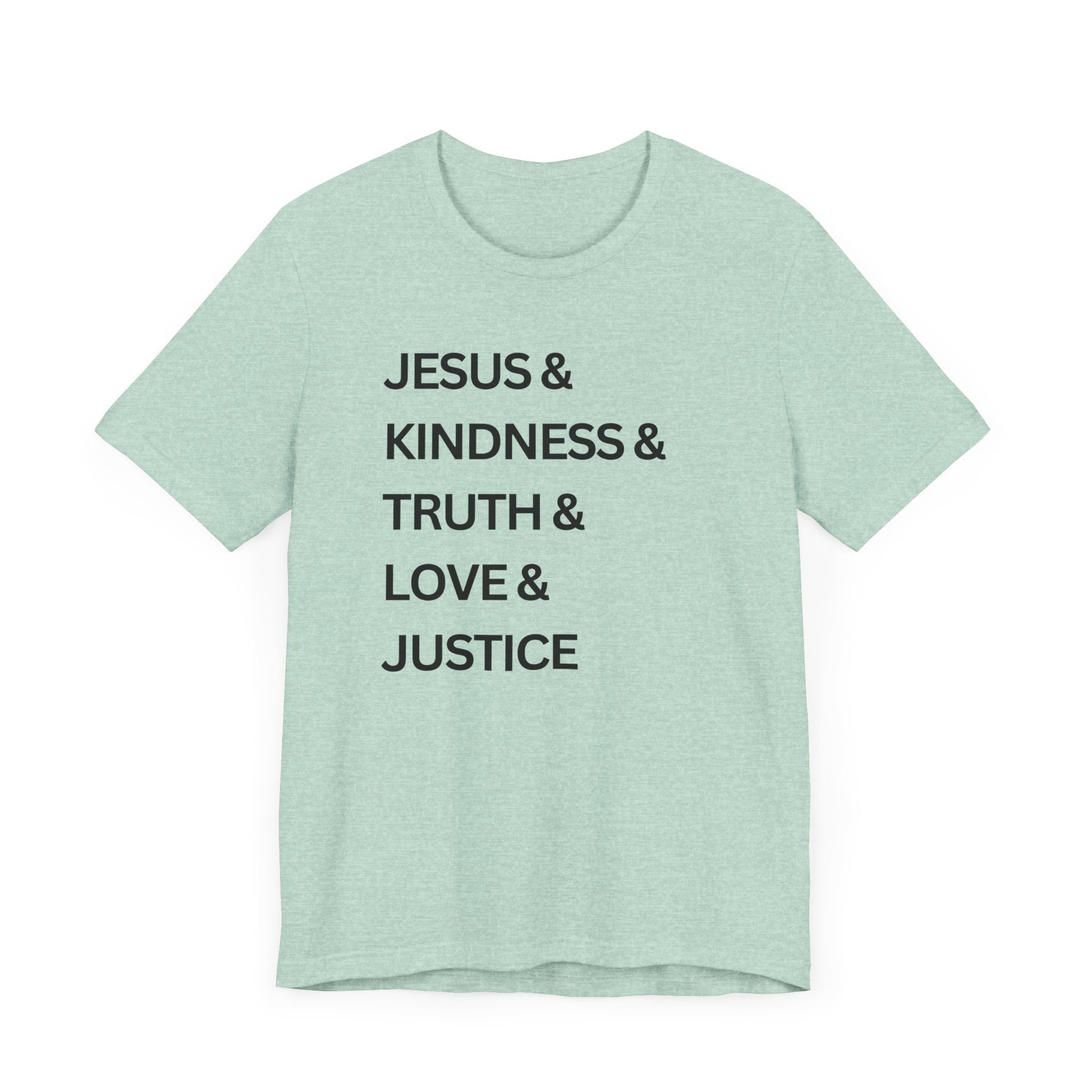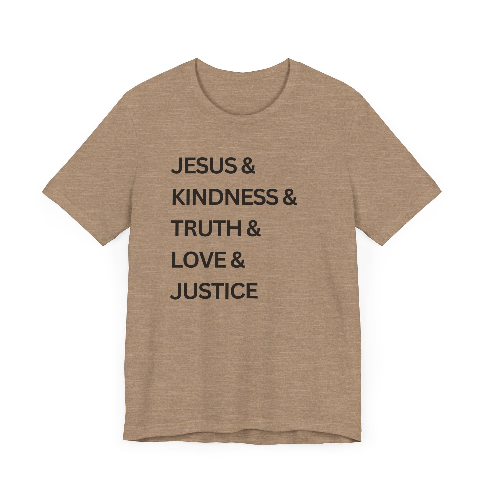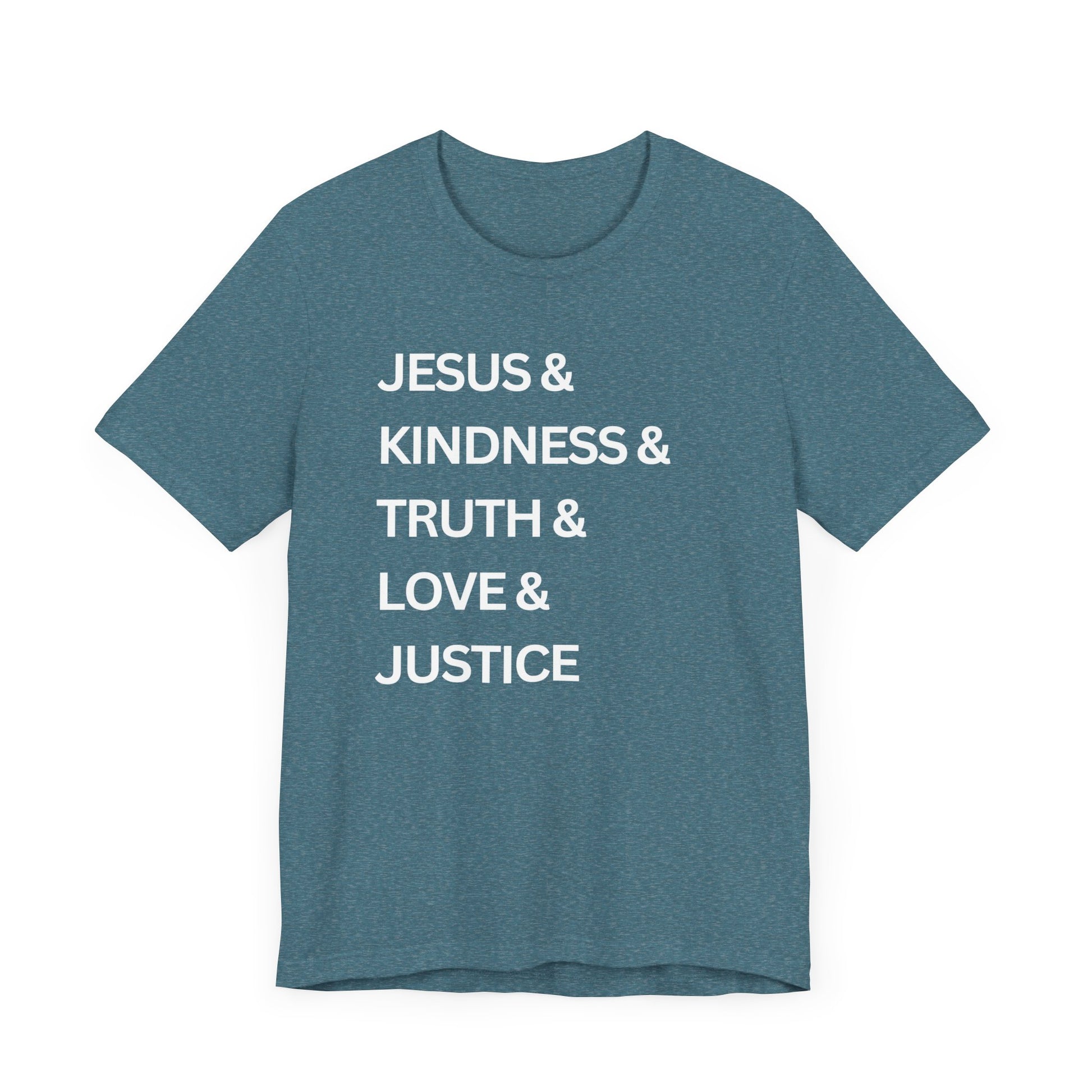 A Jesus-themed adult tee that is perfect for casual and semi-formal settings. Made with 100% Airlume combed and ring-spun cotton, it is lightweight and breathable, ideal for active and leisure wear. The retail fit and crew neckline add a classic, neat style that's perfect for accessorizing. Relevant for religious holidays and everyday wear.