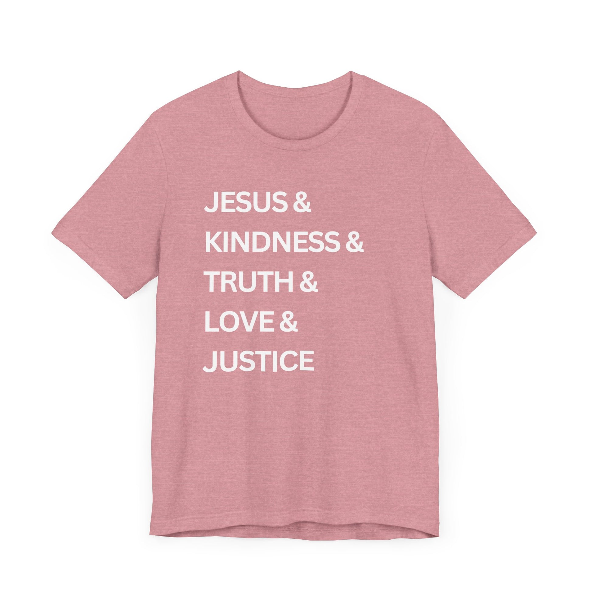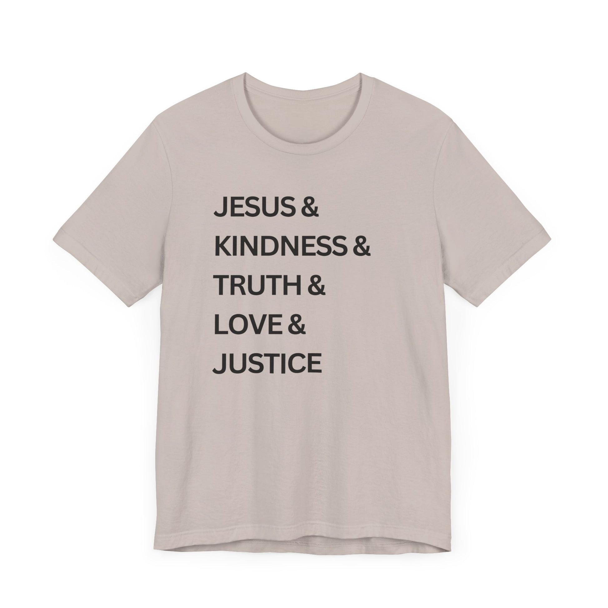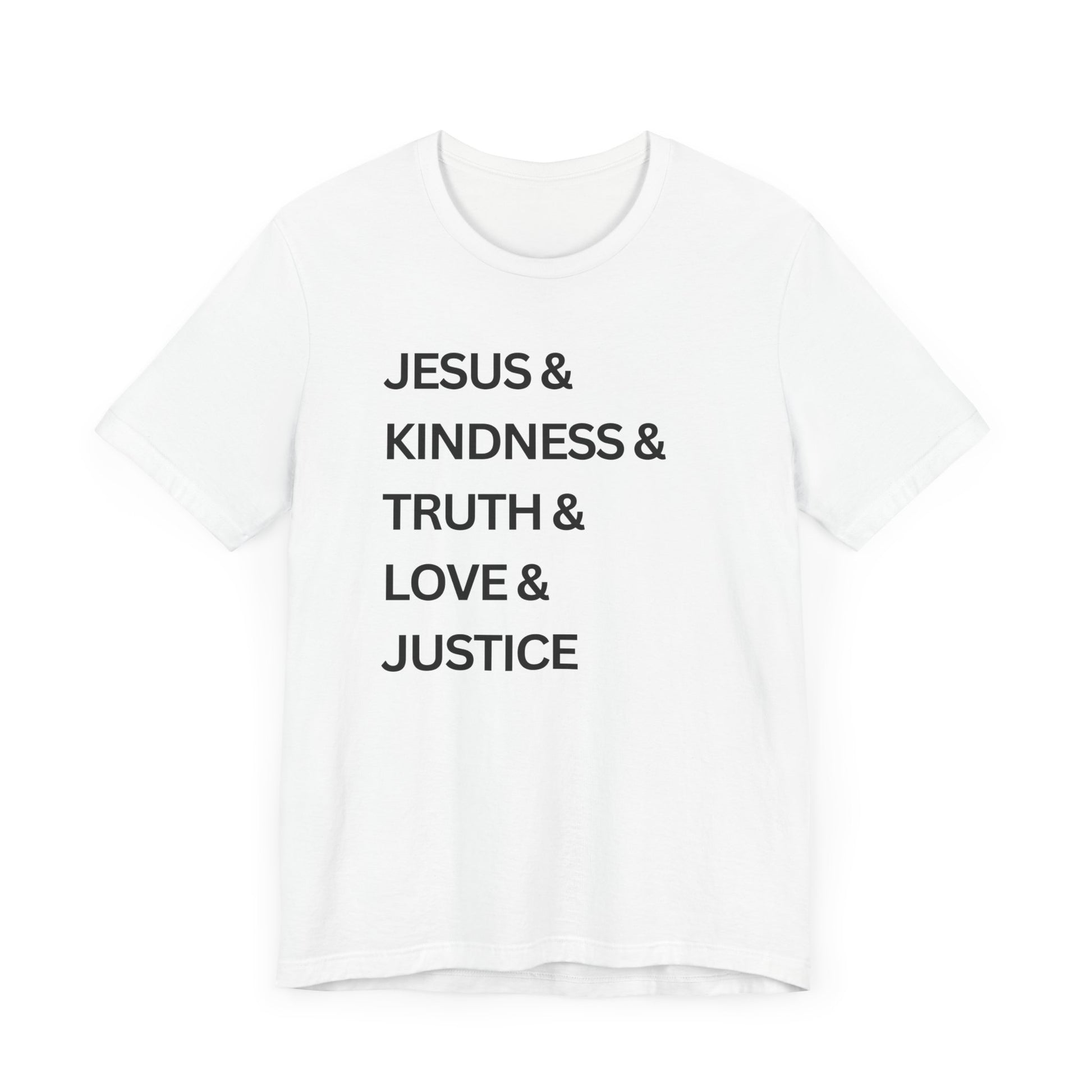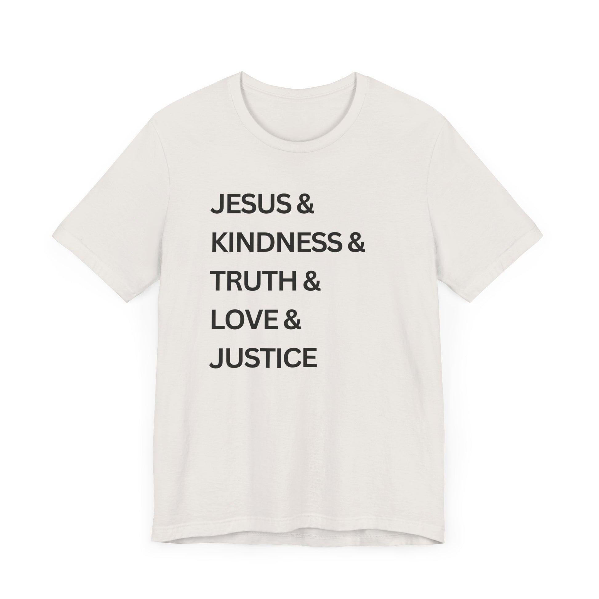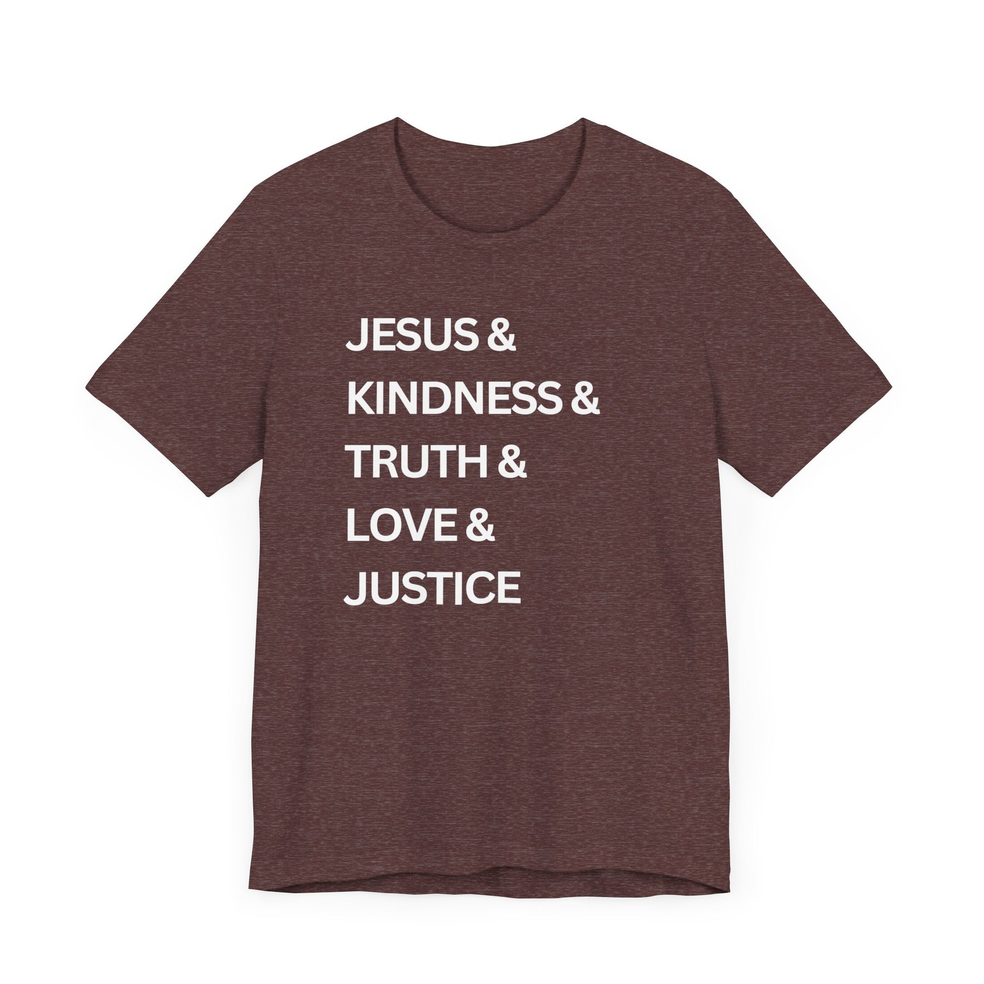 A Jesus-themed adult tee that is perfect for casual and semi-formal settings. Made with 100% Airlume combed and ring-spun cotton, it is lightweight and breathable, ideal for active and leisure wear. The retail fit and crew neckline add a classic, neat style that's perfect for accessorizing. Relevant for religious holidays and everyday wear.